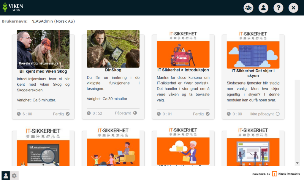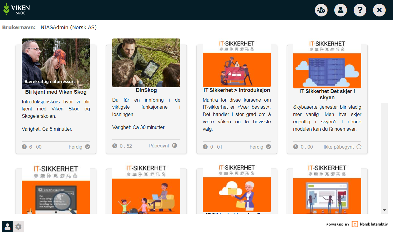 A learning portal is used to register and organise the company's participants and distribute online courses to them. The portal gives you an overview of how many people have completed the courses, with what results and how much time has been spent. Participants get an overview of their efforts and can, for example, receive a course certificate after completing the course. The learning portal and courses can be used on ordinary computers, tablets or mobiles.